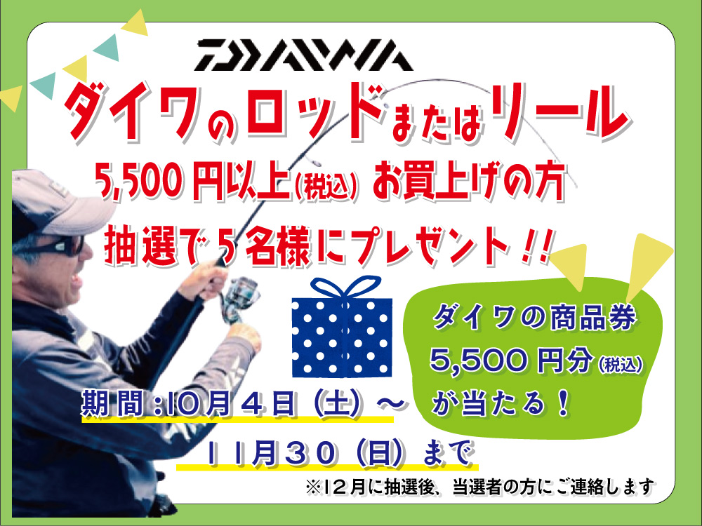 DAIWA ロッドまたはリールをお買上げの方に商品券をプレゼント 🎉
