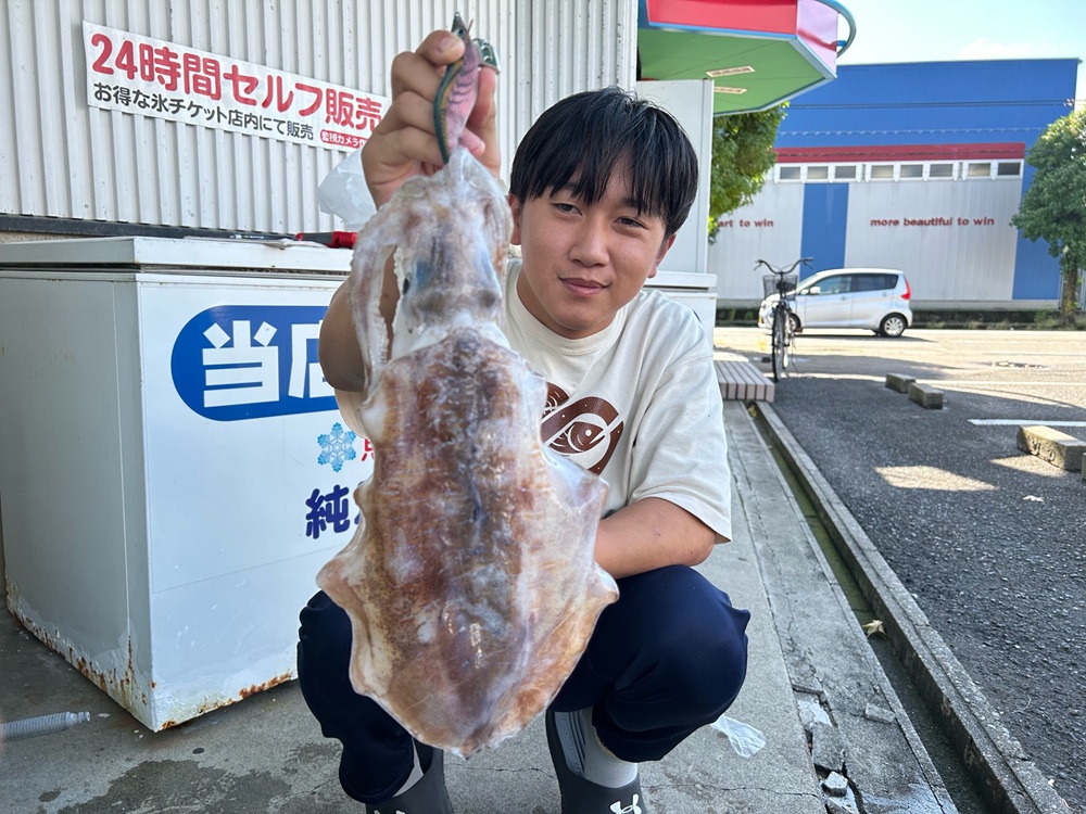 アオリイカ エギング 釣人 田仲 祐也さん 日時 2025/10/06 / 夜中 場所 越前海岸 サイズ 24㎝頭に8ハイ 重さ 620g 仕掛orヒットルアー エギ王K3.5号(軍艦グリーン) コメント 風が強かったので、風裏探して入りました。 それでも風でアタリとるのが苦労しましたが8ハイ釣れました!! スタッフコメント:メガサイズお見事です!! 風が強い時のアタリのとり方、参考になります✨