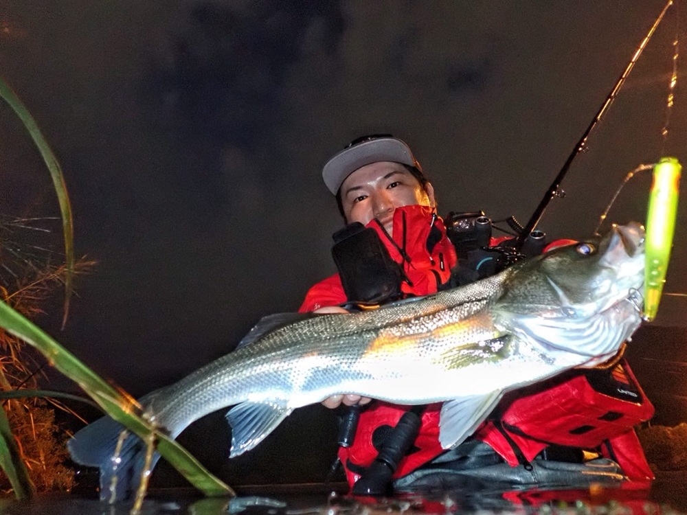 シーバス シーバス 釣人 熊野さん@ハルシオンテスター 日時 2025/10/05 - 場所 福井 九頭竜川 サイズ 65㎝ 重さ - 仕掛orヒットルアー ペニーサック140初代 コメント 明暗ドリフト スタッフコメント:お見事です!!