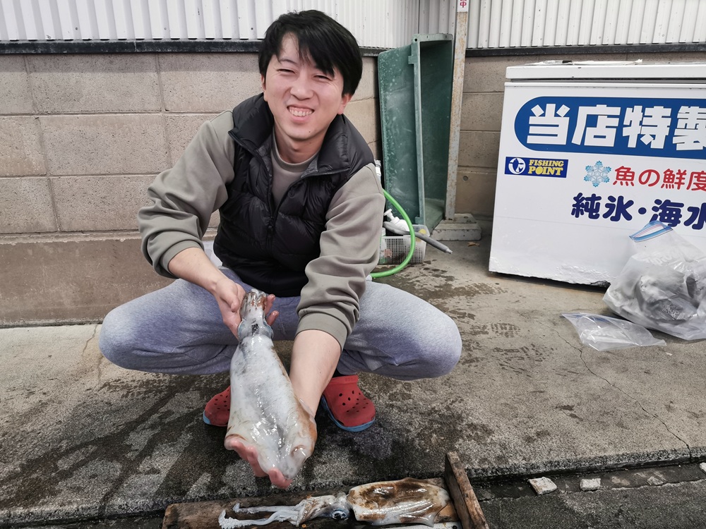 アオリイカ 釣人 原嶋 崇さん 日時 2025/11/06 - 場所 三国 サイズ 28.5㎝ 重さ 1060g 仕掛orヒットルアー エギ王K3.0号 コメント キロアップ出ました~!! スタッフコメント:1060g!!キロアップおめでとうございます!!