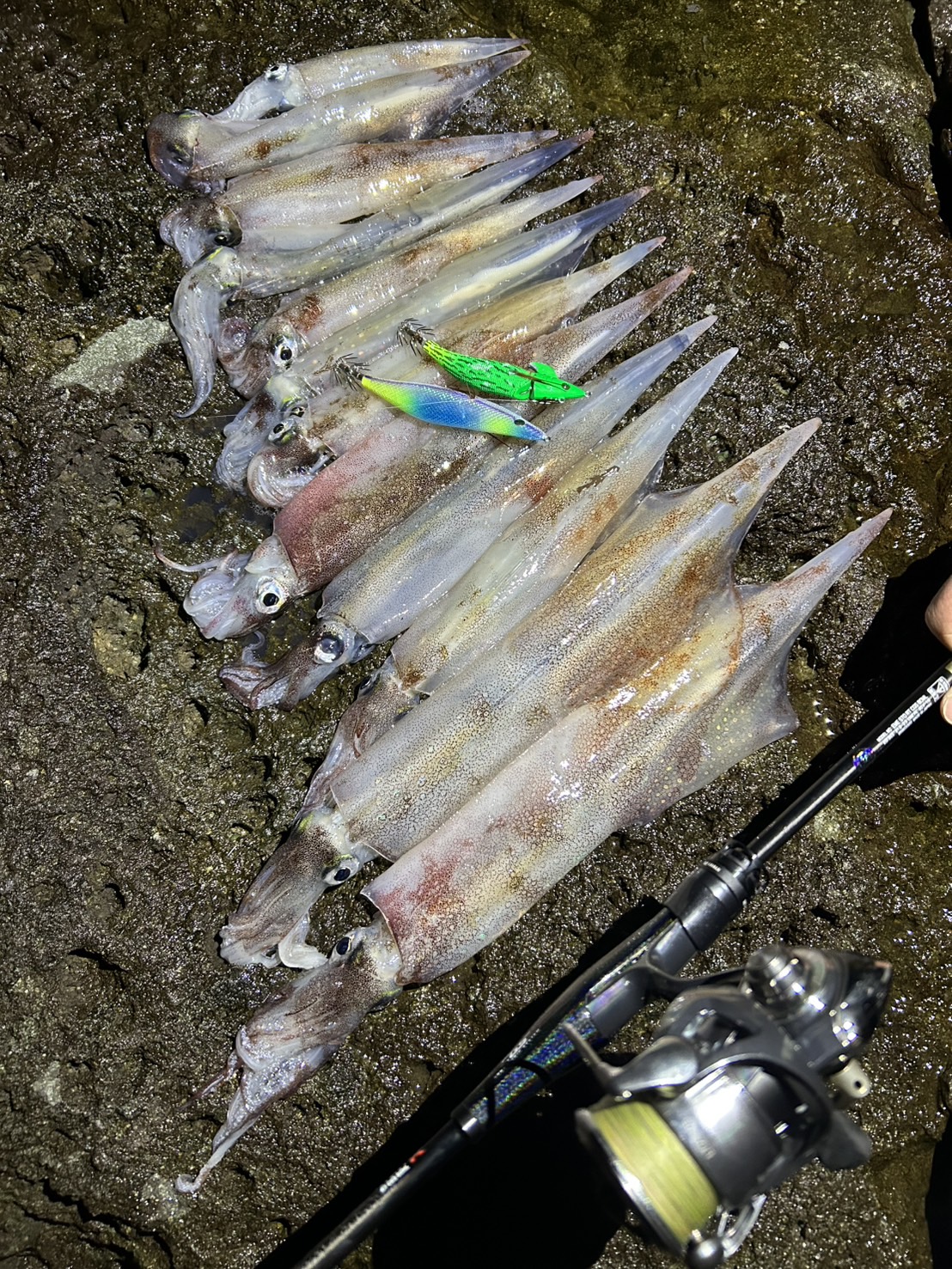ヤリイカ エギング 釣人 赤池 侑哉さん 日時 2026/02/12 / 20:00~24:00 場所 福井 越前海岸 サイズ 胴長40㎝頭に 12ハイ 重さ - 仕掛orヒットルアー エメラルダスダートLC・アモラスジョイント コメント エギングクラスにてヤリイカの講座も開催中です。 是非、お気軽にお声掛けください。 ―スタッフコメント― 立派なオスのヤリイカです。 エギングで釣れると楽しさも倍増ですね。