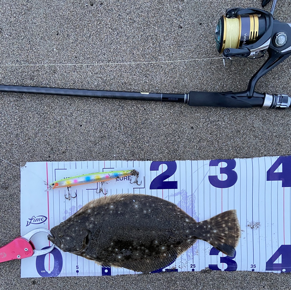 ヒラメ・アジ ルアーフィッシング 釣人 黒川 幹夫さん 日時 2026/04/13 / 18時半過ぎから19時10分過ぎ 場所 新保サーフ サイズ 42㎝、33㎝、34㎝ 重さ - 仕掛orヒットルアー シマノ スリムアサシン コメント 短時間で、3本の釣果お見事です!!