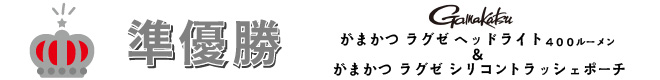 - 🥈準優勝・小林弘延さん 🎁がまかつラグゼヘッドライト(400ルーメン)&がまかつラグゼシリコントラッシェポーチ