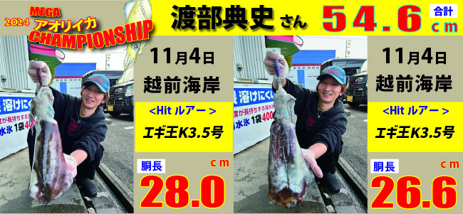 - 🥉第3位・渡部典史さん 🎁VISOAルアーウオッシュハンガー