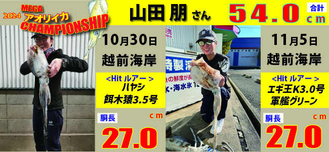 - 🏆第4位・山田朋さん 🎁林釣漁具製作所イカシメピックモンキーワーカー&ダイワエメラルダスステイ3.5号&ヤマシタエギ王グッズ
