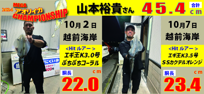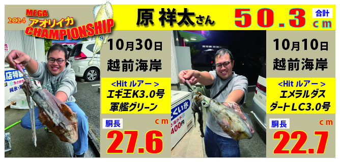 - 🏆第5位・原嶋 崇さん 🎁ヤマシタエギ王エギストッカー&ダイワエメラルダスステイ3.5号&ヤマシタエギ王グッズ